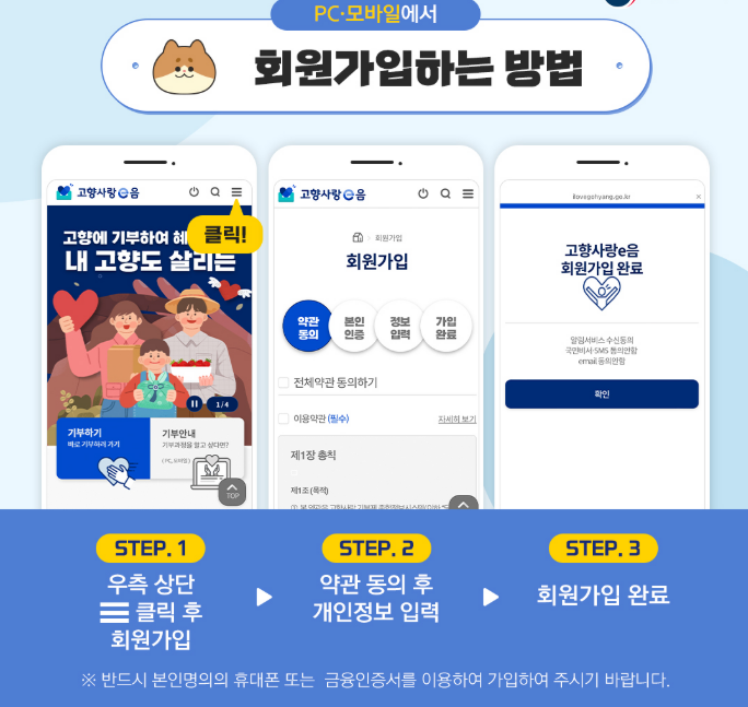 고향사랑 기부제는 개인만 참여 가능하며, 주민등록상 주소지를 제외한 모든 지자체로 기부할 수 있다.