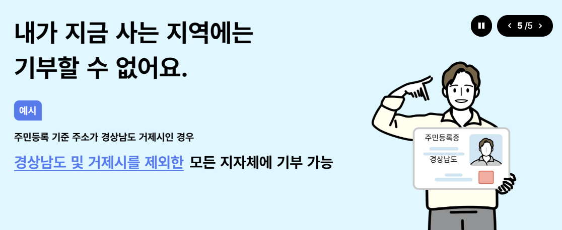 ● 기부 불가 대상: 본인 주소지 관할 지자체
