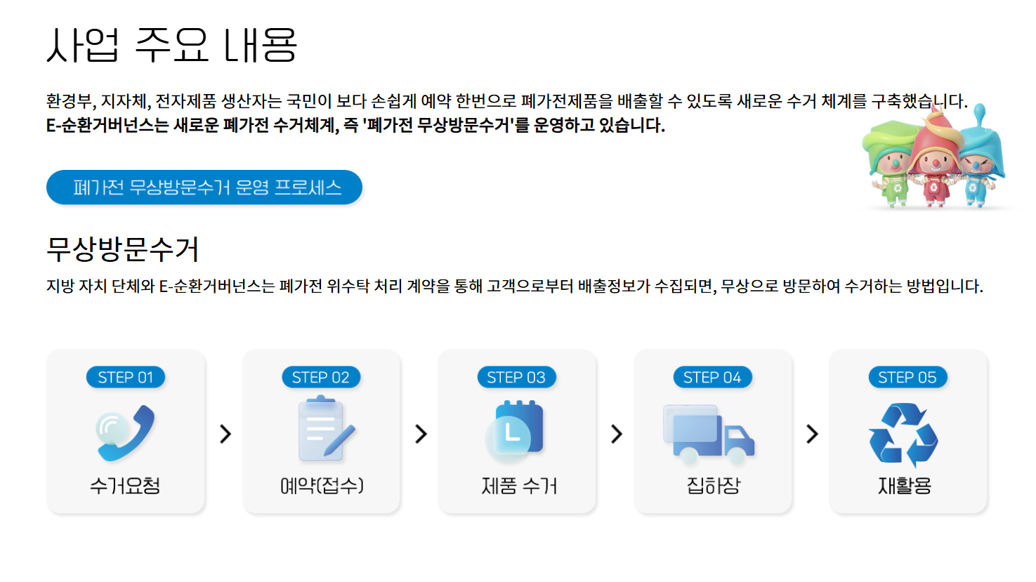‘폐가전 무상방문수거서비스’는 환경부가 추진하고 한국환경공단이 운영하는 국가 공공 서비스다.
