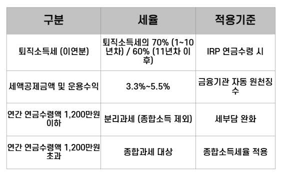 퇴직 시점 이전부터 IRP 개설·상품운용·세율 구조를 체계적으로 파악해야 합니다.